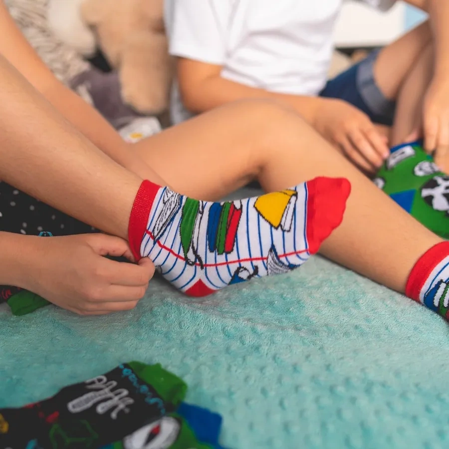 To gwarancja dobrego stylu i ogromnej wygody dla każdego dziecka, które stawia pierwsze kroki na szkolnych korytarzach. Dziecięce skarpetki w szkolne wzory sprawdzą się jako upominek, ale możesz też po prostu uzupełnić nimi braki w dziecięcej bieliźnie – to świetne skarpetki na co dzień, odpowiednie dla chłopców, jak i dla dziewczynek. Możesz mieć pewność, że zachwycą Cię nie tylko oryginalnymi wzorami, ale też trwałością i miękkością materiału.