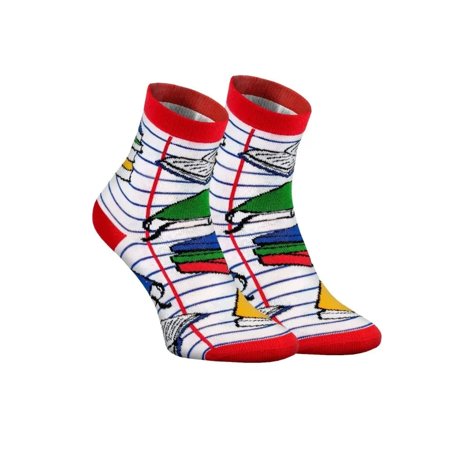 - Kolorowe skarpetki w szkolne wzory dla małego humanisty lub mola książkowego. 1 para.