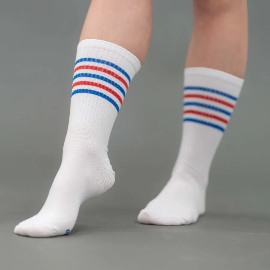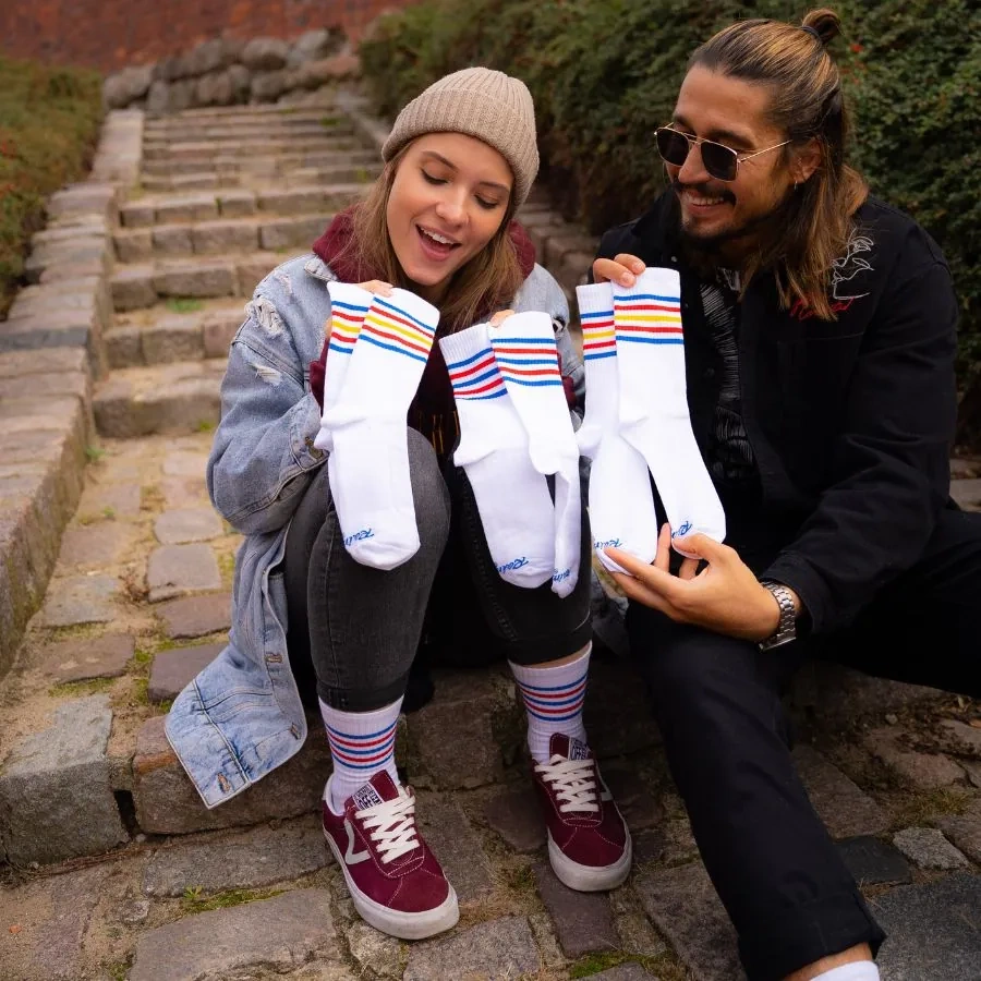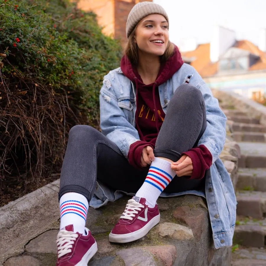 Szukasz skarpetek uniwersalnych i modnych, ale nie chcesz kolejnej tradycyjnej pary białych skarpetek w szufladzie? Skarpetki damskie w paski z szerokim ściągaczem to zdecydowanie skarpetki dla Ciebie. Moda retro - w tym na skarpetki - powraca do łask, a kolorowe paseczki sprawiają, że klasyczna stylizacja jest lekko odświeżona.